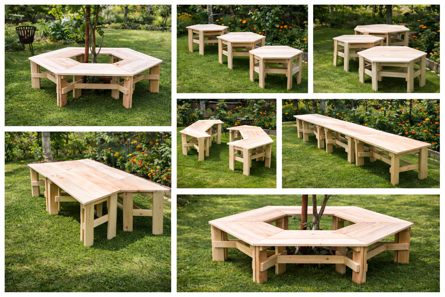 Gefertigt aus massivem Holz und stabil konstruiert, sind sie für den dauerhaften Einsatz im Außenbereich vorgesehen.