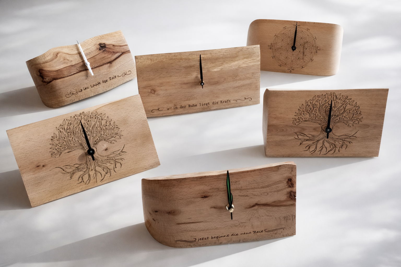Neben größeren Möbelstücken entstehen in unserer Werkstatt auch kleinere Objekte aus Naturholz – funktional, dekorativ oder beides zugleich.