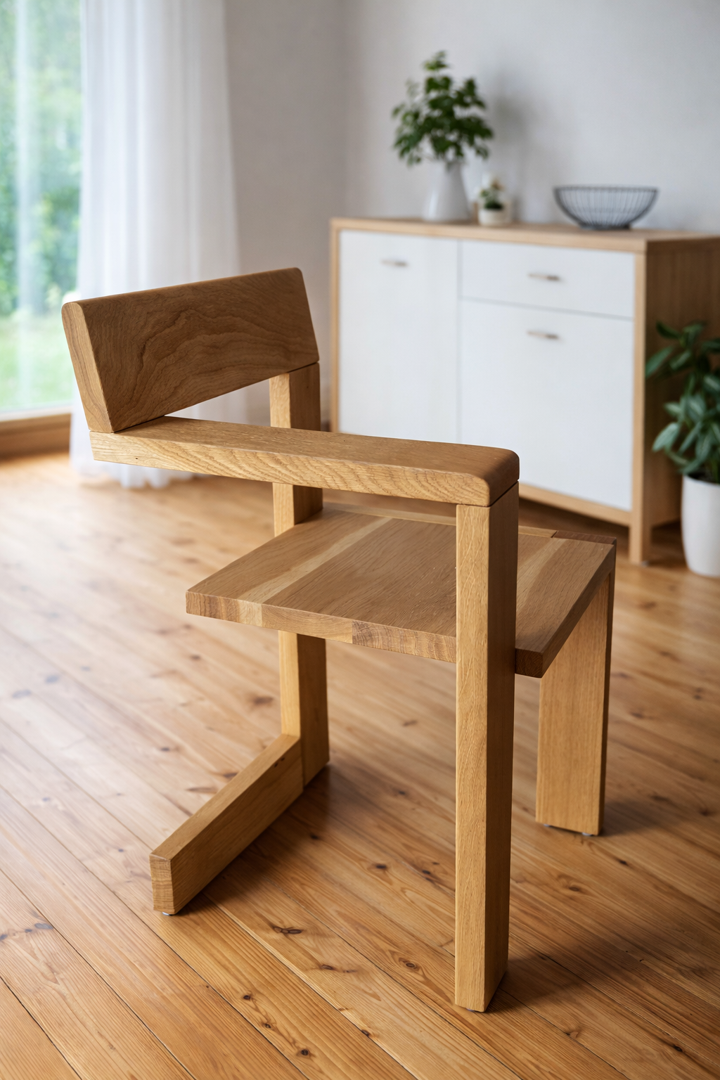 Ob Stuhl, Hocker oder Spielküche – auch kleinere Werkstücke entstehen aus massivem Holz mit derselben Aufmerksamkeit für Material, Proportion und Stabilität.